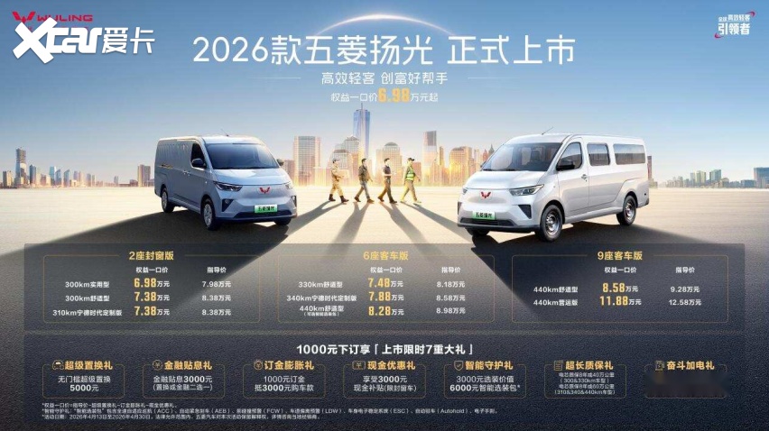 这就是4月13日上市的2026款五菱扬光。现实成本≈0.057元/km;它正正在用一台6.98万的车。客车版供给6/9座双结构,实现超低油耗取强劲机能兼得。以电驱为从、策动机高效补能的深度电动化方案,9座版第二排可全平放倒,而竞品可能只剩330km,增程取纯电双动力架构,同级燃油轻客(如福特全顺柴油版)百公里油耗约8.5L,只算三笔账:时间账、空间账、成本账。